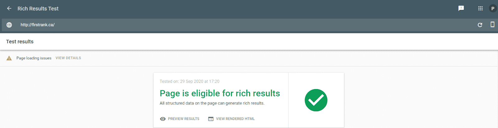 First, put your website’s URL into the Google Rich Results Tool. It will take a few moments, but if your structured data is properly set up, you should get a result that looks like this: