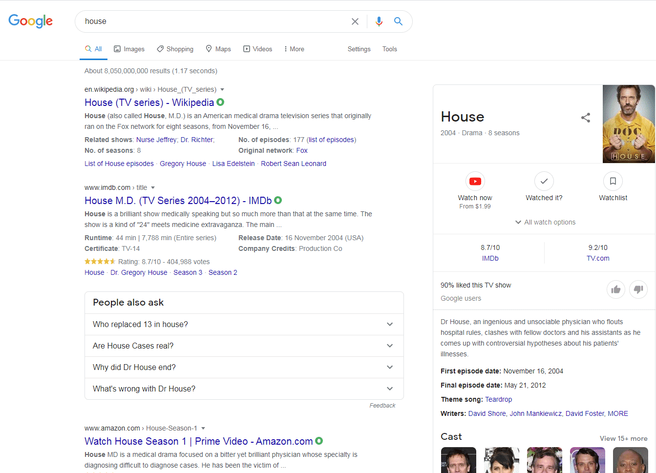 Search engines try to guess at user intent - in other words, they try to display results that match what users actually want. When a user searches “house”, search engines are going to display very generic results. When we search for “house”, we get these results:
