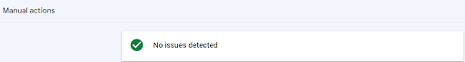 You can find manual actions in your Google Search Console. Most business owners will never see a manual action on their site; as such, the manual action report in GSC should look like this: