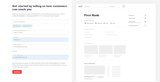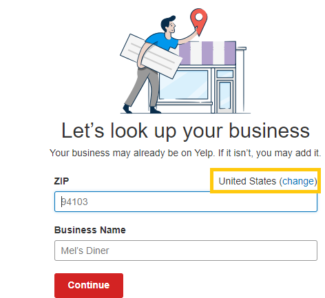 From here, simply input your business ZIP/Postal Code and name then click “Continue”.