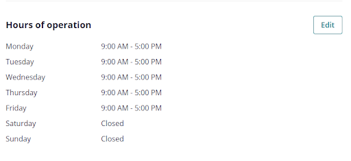 Scroll down, and you’ll be able to edit your hours of operation: