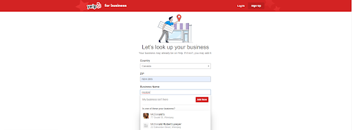 Start typing in your business name. If your business is already on Yelp, the field will auto-populate, like so: