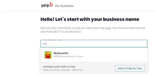In this circumstance, you’ll simply click “Add to Yelp for free”.